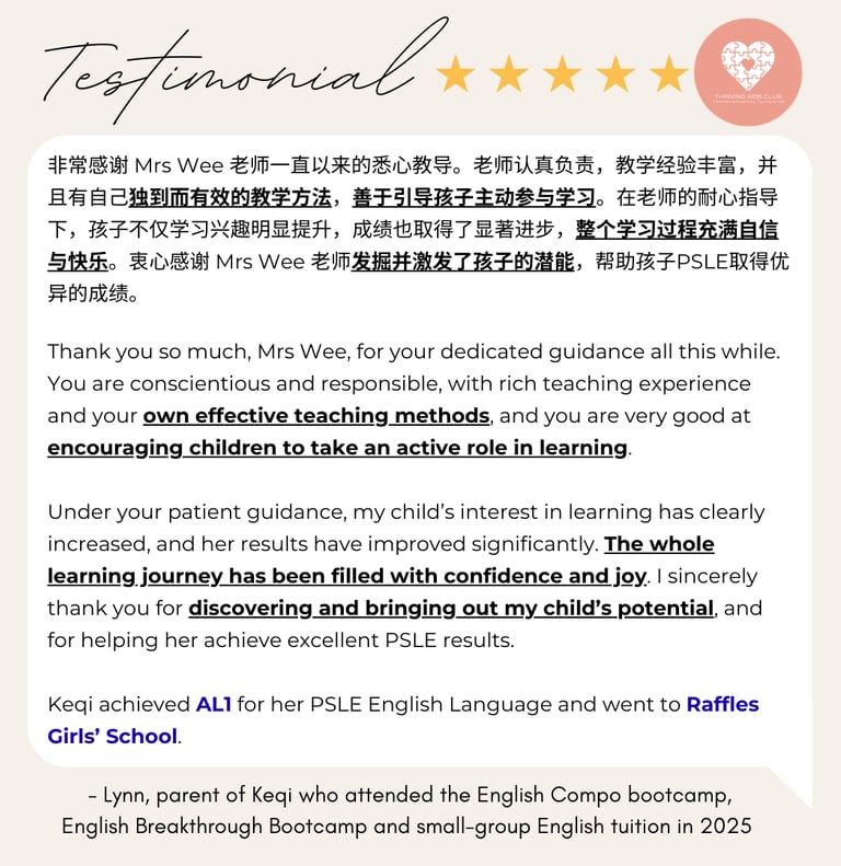 Our strategies are drawn from real PSLE papers and top school exam scripts. We don’t teach in isolation—we identify recurring patterns, grammar traps, and question types that are highly likely to appear again.